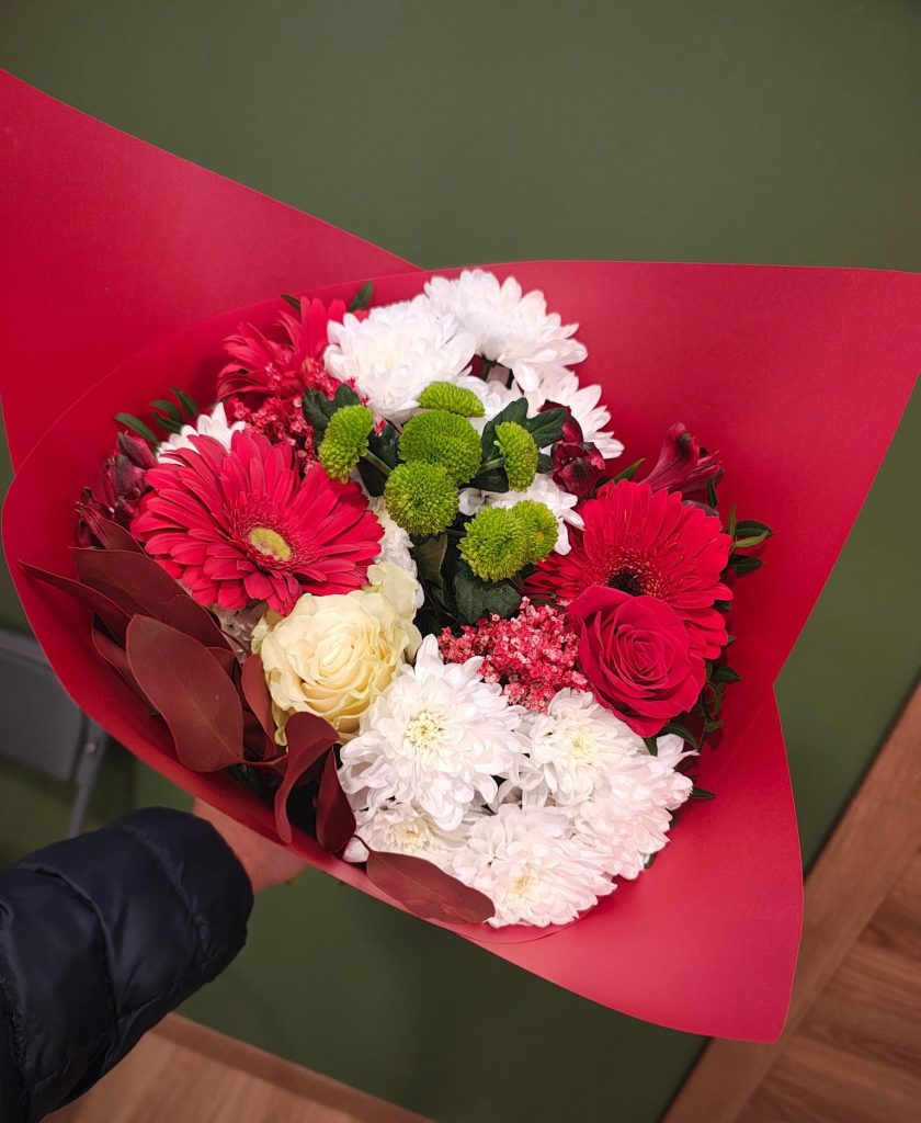Cada ramo se prepara de forma artesanal, asegurando que cada flor tenga su protagonismo y que el conjunto mantenga una composición armónica y agradable a la vista. Su estilo natural lo convierte en un detalle que transmite emoción, cercanía y buen gusto sin necesidad de palabras.